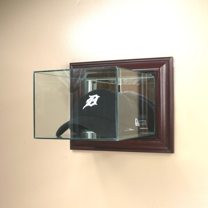 This mirrored (bottom and back), UV-protected glass baseball cap and hat display rack is a perfect way for you to showcase your special baseball hats, or even cowboy hats that have sentimental value. This hat display features handsome cherry wood molding and elegantly showcases your collection while helping you save space in closets and on shelves.