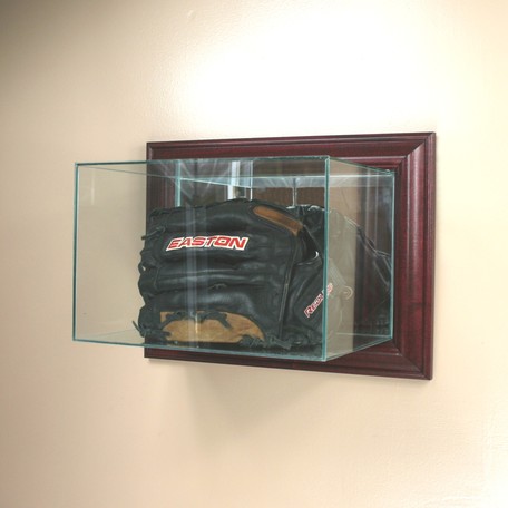 This mirrored (bottom and back), UV-protected glass baseball glove display is a perfect way for you to showcase your special baseball. Features handsome cherry wood molding. Adhesives contain no acids that may deteriorate signatures. Inside dimensions are 12 x 9 x 8. With our laser technology, we can engrave whatever you want on the front panel (inside of glass) of your display case, including text and/or a corporate recognition logo! Holds one glove (glove not included). Perfect for baseball season tournaments and championship games. Ships from: Sanford, Florida. SKU: wmglv-pc.