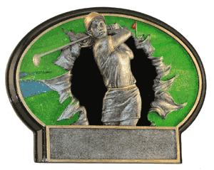 Each female burst-thru golf trophy includes three lines of personalized engraving and choice of black or gold personalized engraving plate. Choose from 6" or 7 1/4" size. Burst-thru golf trophies are also available in other popular sports. Looking for something different? See all of our golf trophies. Great for golf season events and tournament recognition. Ships from: Topeka, Indiana. SKU: wbt754-tw.