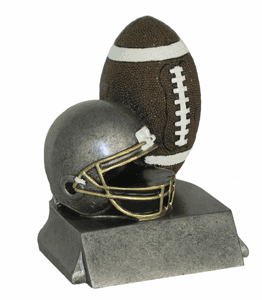 Recognize your hard working football player with this unique trophy design. Featuring a life-like football and helmet, this trophy can be engraved to your personal preferences to commemorate a special football season. This popular football award measures approximately 4 inches tall and includes up to 3 lines of personalized engraving. Looking for something different? See all of our football trophies. Outstanding for honoring football excellence and achievement. Ships from: Topeka, Indiana. SKU: wge459-tw.