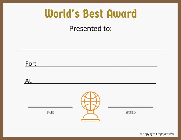 World's Best Award Certificate - Free Template (Item #: Worlds-Best-Free-tc)