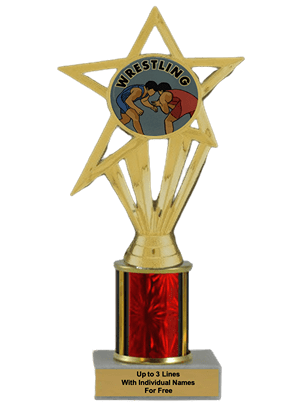 Our economy insert trophy features a real marble base, a 2-inch insert and up to 3 lines of free personalized engraving. Choice of 4 sizes and many column colors. Add up to three lines of text personalized engraving for free, including individual names! Topper: Wrestling Insert. Outstanding for recognizing wrestling excellence and achievement. Ships from: Marquette, Michigan. SKU: wrestling-e-single-i-tc.