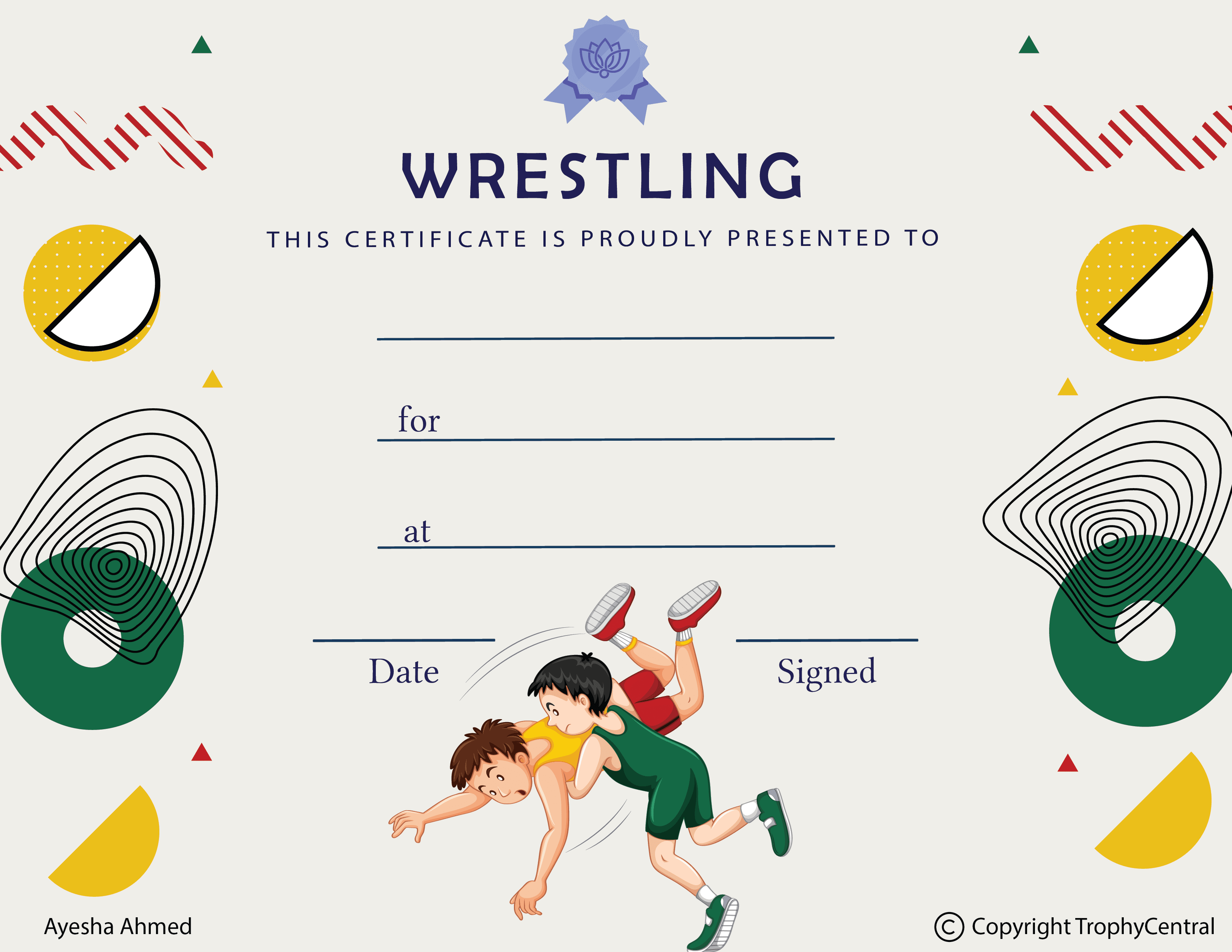 Wrestling Award Certificate - Free Template (Item #: Wrestling-Free-tc)