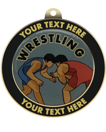 These colorful Wrestling insert medals feature a unique customizable front rim. Each medal also features an antique gold frame with a star design and 2" Epoxy dome decal insert for a spectacular look. Price includes a red, white and blue neck ribbon. Medal frame measures 2 3/4". Optional personalization on back. Outstanding for celebrating wrestling excellence and achievement. Ships from: Marquette, Michigan. SKU: wrestling-mc-pr-tc.