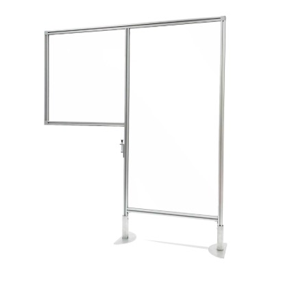 Workstation Divider with Clear Thermoplastic Desk Panel and Porcelain Whiteboard Floor Panel, Open Channel Aluminum Frame, 57"H x 47"W (Item #: wsd2-5747-m1-GT)