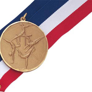 Our high-quality Girls Gymnastics Medallions feature a diamond-cut edge. Perfect for end of season celebrations and ceremonies. Price includes choice of ribbon style (neck or military-style drape) and color; optional personalized engraving on medal back. Buy in bulk for quantity discounts. Ships from: Mount Vernon, New York. SKU: z9030-cm.