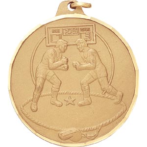Male Wrestlers - 2 Inch Diamond Cut Edge Medal with Ribbon (Item #: Z9049-CM)