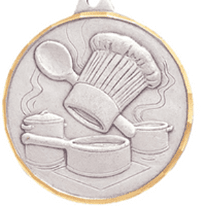 Our high-quality Culinary Arts / Cooking Medals feature a diamond-cut edge. Perfect for end of season celebrations and ceremonies. Price includes choice of ribbon style (neck or military-style drape) and color; optional personalized engraving on medal back. Buy in bulk for quantity discounts. Be sure to also see our other Cooking Medals, Trophies and Awards and our complete selection of Award Medals. Ships from: Mount Vernon, New York. SKU: z9135-cm.