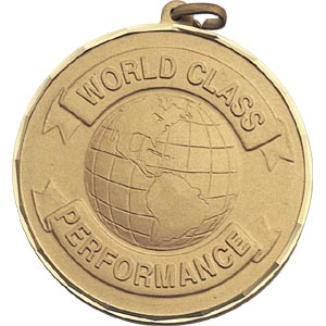 Our high-quality World Class Performance Medals feature a diamond-cut edge. Price includes choice of ribbon style (neck or military-style drape) and color; optional personalized engraving on medal back. Wonderful for honoring accomplishments and milestones. Ships from: Mount Vernon, New York. SKU: z9858-cm.